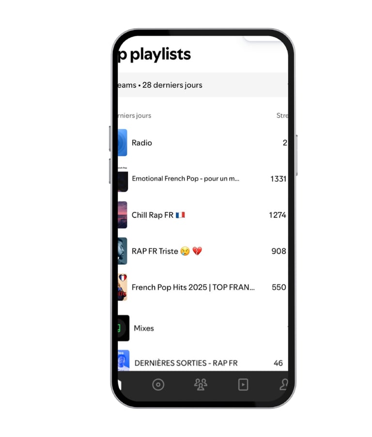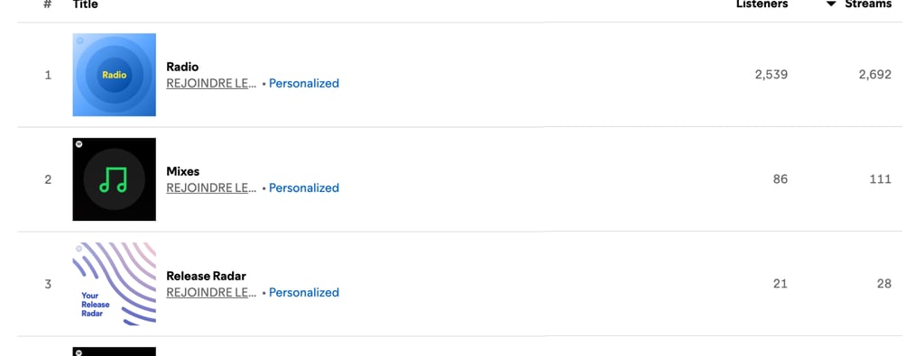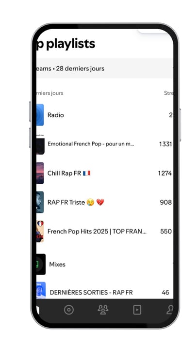 Quand un titre est bien écouté et apprécié par cette audience, Spotify peut le recommander à d’autres auditeurs via ses playlists algorithmiques, comme Radio ou Découvertes, qui peuvent générer des milliers d'écoutes.